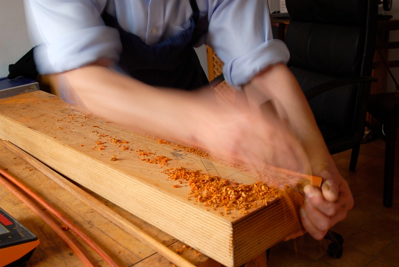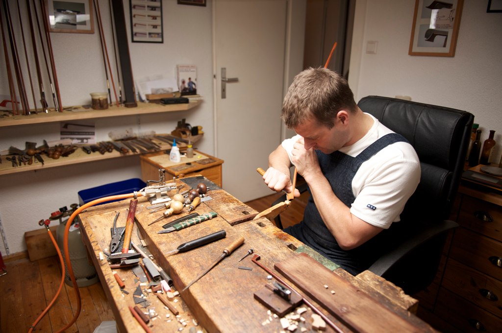 Thomas Acker in seiner Werkstatt, in der er das traditionelle Handwerk ausschließlich für Einzelanfertigungen pflegt.
